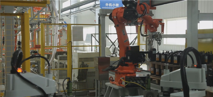 (四)自動化下線機:通過機器人完成自動夾取產品、自動堆碼、自動取夾板等操作,全過程無人化操作,可滿足產品質量在150KG內的自動堆垛,安定效率高。
