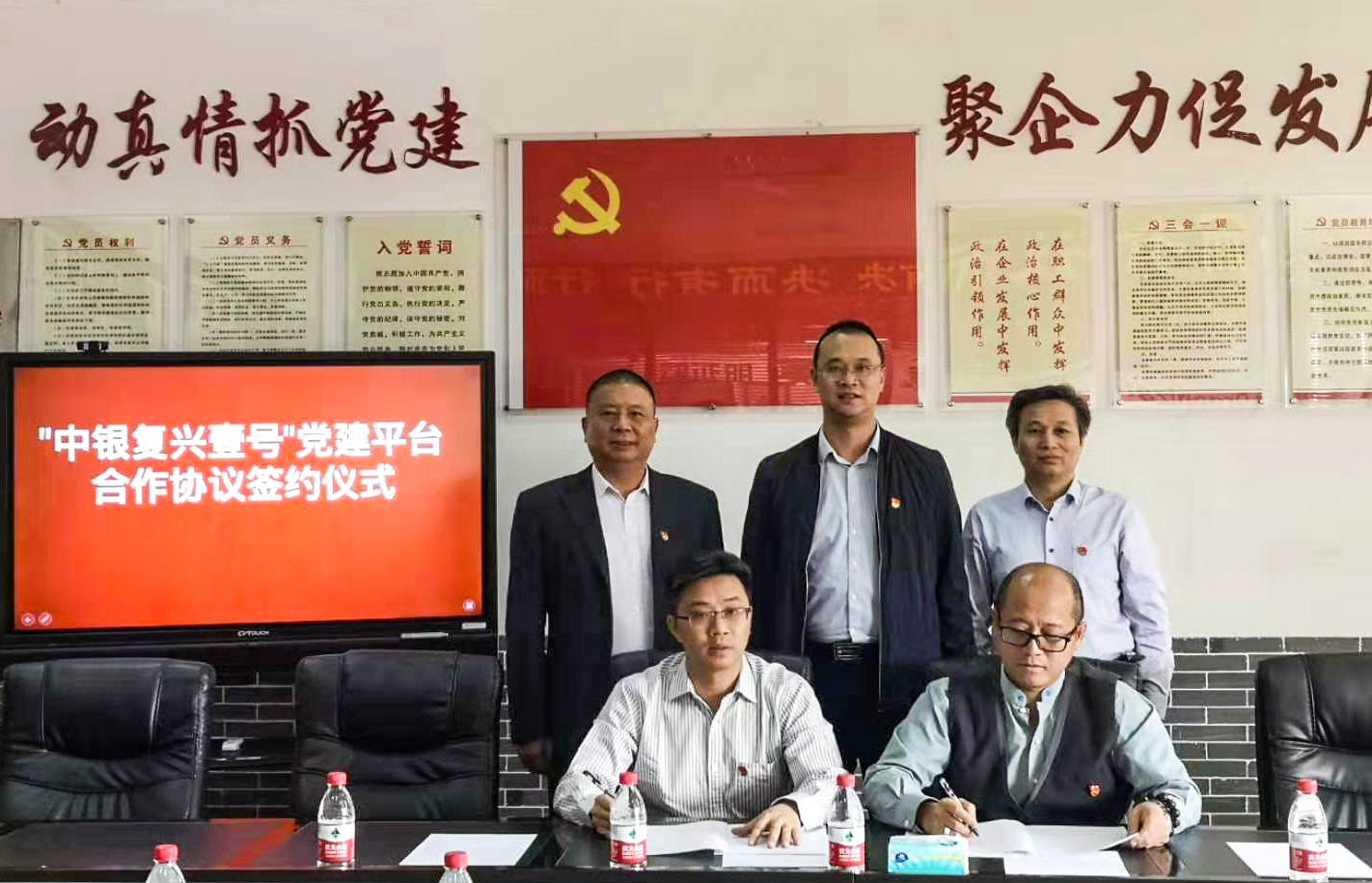 簽約儀式中,中國銀行東莞大嶺山支行行長、黨支部書記孫玉成與匯興智造董事長鐘輝共同簽署《“中銀復(fù)興壹號”黨建平臺合作協(xié)議》,就主題教育開展、基層黨組織互聯(lián)共建等方面進行了深入溝通交流。