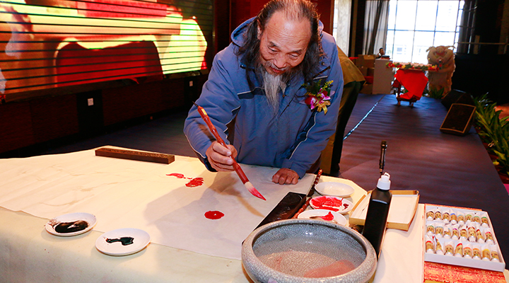 著名書畫藝術(shù)家?guī)X南畫派泰斗梁培浩教授現(xiàn)場(chǎng)創(chuàng)作<span style="font-family:" font-size:14px;"="">