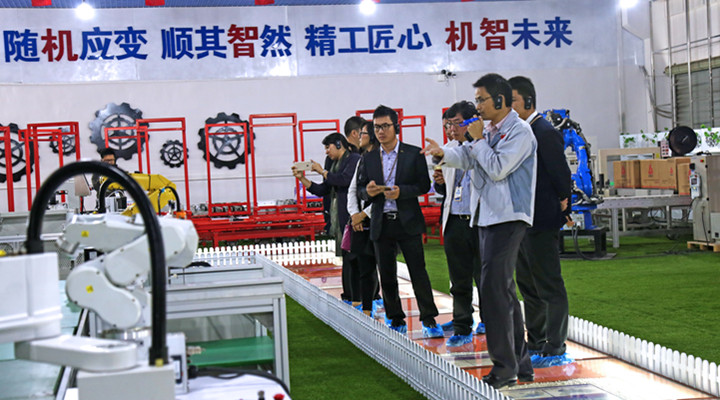 2017年1月3日,天安數(shù)碼城總建筑師李永凱一行到訪匯興智造交流學(xué)習(xí),董事長(zhǎng)特助柯火炎對(duì)他們的到來(lái)表示熱烈的歡迎,并親自帶領(lǐng)參觀了開(kāi)館不久的工業(yè)4.0體驗(yàn)館,介紹了匯興智造“順其‘智’然”、機(jī)‘智’未來(lái)”的設(shè)計(jì)理念,如何打造源于自然、貼近生活的智能工廠,聽(tīng)了柯秘的介紹,李永凱建筑師表示深度的認(rèn)同:在這里,我看到的不是鋼筋、水泥、混凝土,而是藍(lán)天、白云、綠草、小橋、流水、木屋、石柱……這里就是工業(yè)文明源于自然的生動(dòng)寫(xiě)照。