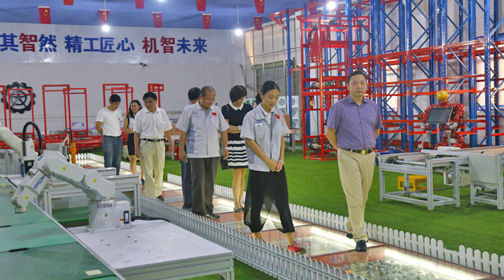 楊副院長一行在董事長鐘輝的陪同下參觀了企業的智能生產線演示、匯興精工智造工業4.0體驗館、工程研發部信息化組等部門,雙方表示今后要加強對接,細化合作內容,創造更多的社會價值。在參觀過程中,董事長鐘輝向一行成員介紹了公司的發展歷程、經營業務及取得成就,他表示作為掛牌上市公司,始終重視企業內部的人才培養和技術革新,需要校企之間密切合作,并在不同的專業和領域搭建多種平臺,促進校企間的優勢互補和良性互動。
