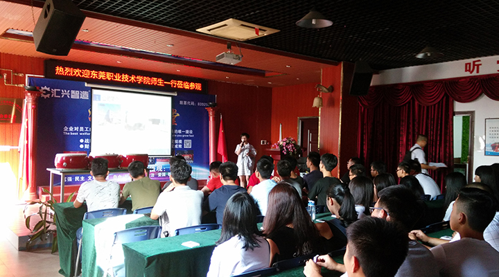 在參觀完體驗館后為了可以進一步的讓師生了解匯興智造,蔣經(jīng)理還特意為師生們介紹了匯興發(fā)展歷程、核心優(yōu)勢、戰(zhàn)略規(guī)劃以及商業(yè)模式。東莞職業(yè)技術學院師生們對這次與匯興智造的學習交流活動十分歡喜,都表示學到了很多書上沒有的東西,期待今后還有交再次交流的機會。