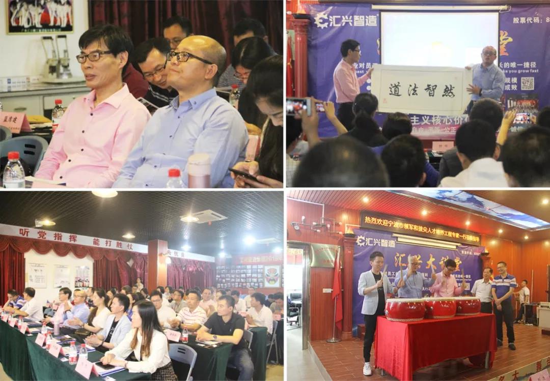 11月13日下午,寧波市領軍和拔尖人才培養工程專家一行共50余人蒞臨廣東匯興精工智造股份有限公司參觀考察,受到公司董事長鐘輝、知識產權部經理蔣明華等人的熱情接待。同時,在公司還舉辦了企業品牌形象專題講座,由人事行政部經理袁侃主持,東莞理工學院城市學院創意設計學院院長林江龍教授作《品牌形象價值與經典品牌案例分析》分享,與會專家就企業管理、品牌建設、新三板掛牌企業政策支持、非標自動化項目管理等方面與鐘輝董事長、林江龍教授進行了廣泛交流和互動溝通。