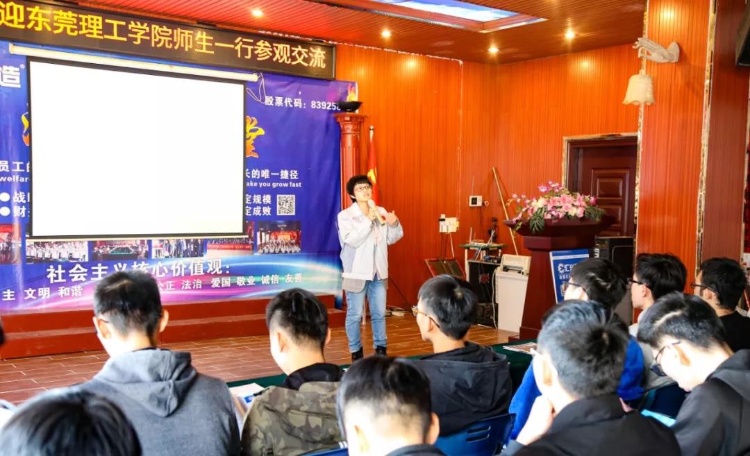 隨后,蔣明華在公司大會(huì)議室向師生們詳細(xì)介紹了公司的發(fā)展歷程、產(chǎn)品特點(diǎn)、核心優(yōu)勢、企業(yè)文化、人力資源、員工晉升通道等方面的概況,并熱忱歡迎東莞理工學(xué)院學(xué)子來公司參觀,更歡迎畢業(yè)的大學(xué)生來公司就業(yè)。