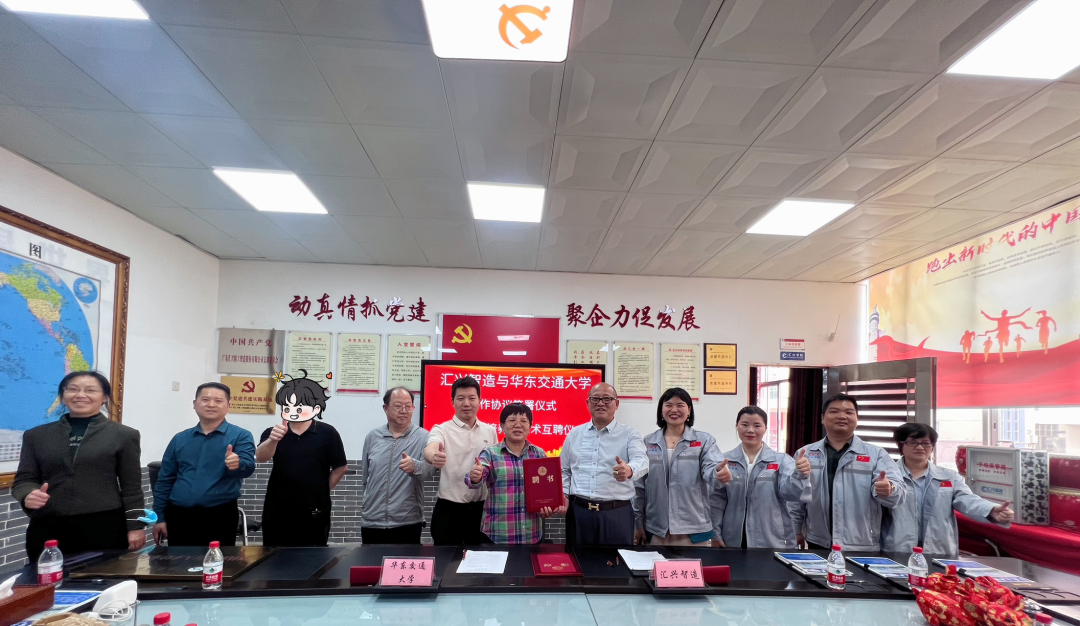 簽署儀式、科技人才培育與技術(shù)互聘儀式。華東交通大學(xué)劉院長一行,及匯興智造董事長、總經(jīng)辦相關(guān)人員出席了簽署儀式。